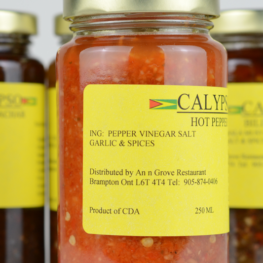 If you're looking for something that represents the essence of Guyanese cuisine, look no further than Calypso Hot Pepper Sauce. This Guyanese-style hot sauce packs a serious punch with its fiery heat, thanks to fresh Caribbean peppers. Calypso sauce is perfect for those who love intense flavours. It’s best enjoyed in moderation—just a few drops can transform soups, rice dishes, and even a simple sandwich into a spicy, flavour-packed meal.